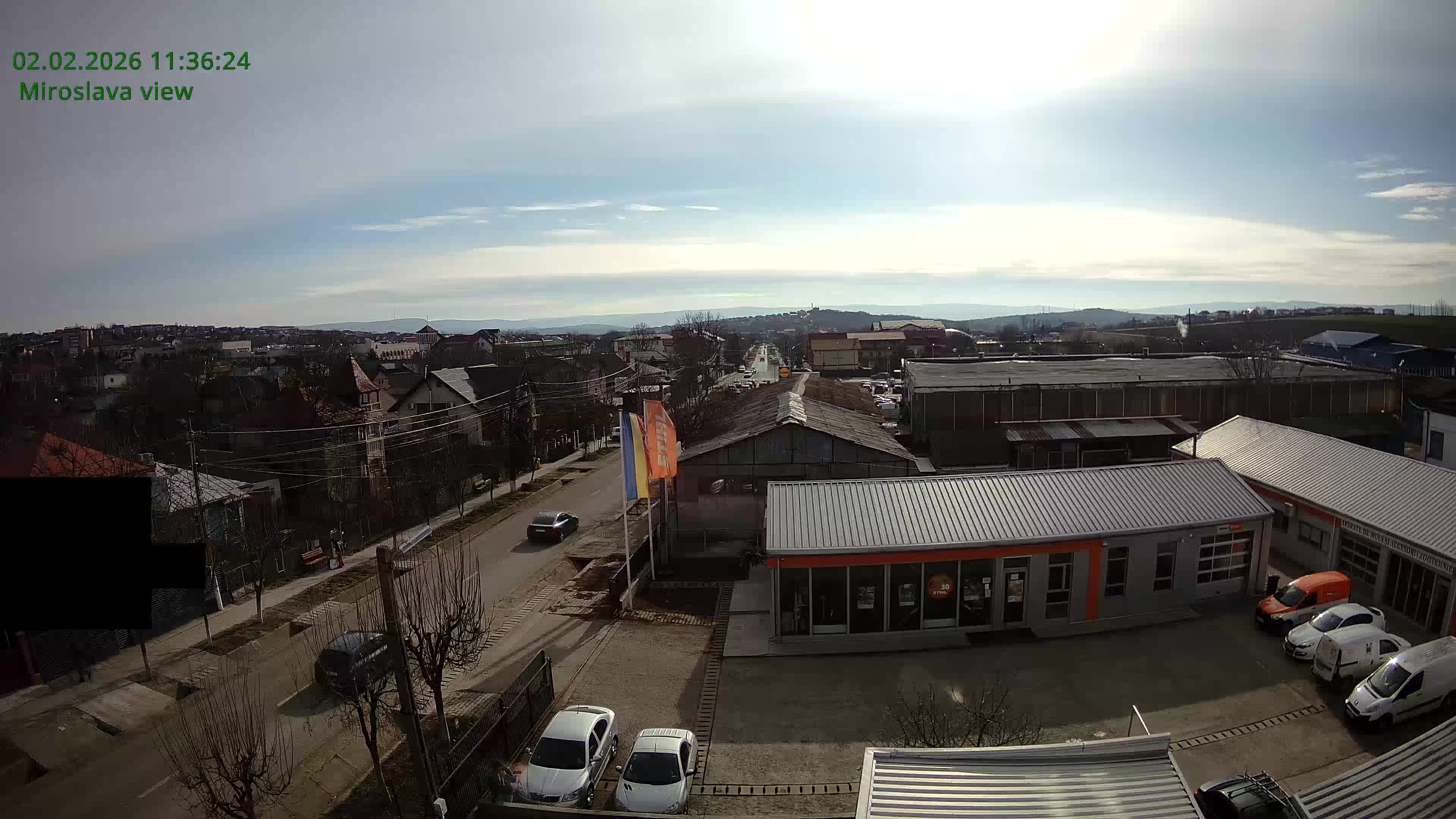 Unul din parcarea noastră, folosită și intern, iar celălalt oferă o priveliște de pe clădire — un live simplu, pentru context, atmosferă și vreme.